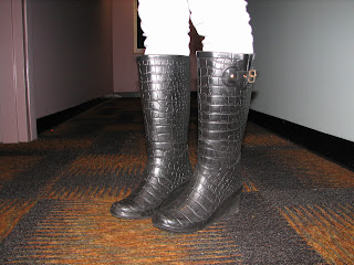Add a little sophistication to an otherwise undignified rubber affair with a gatorskin texure and heels...